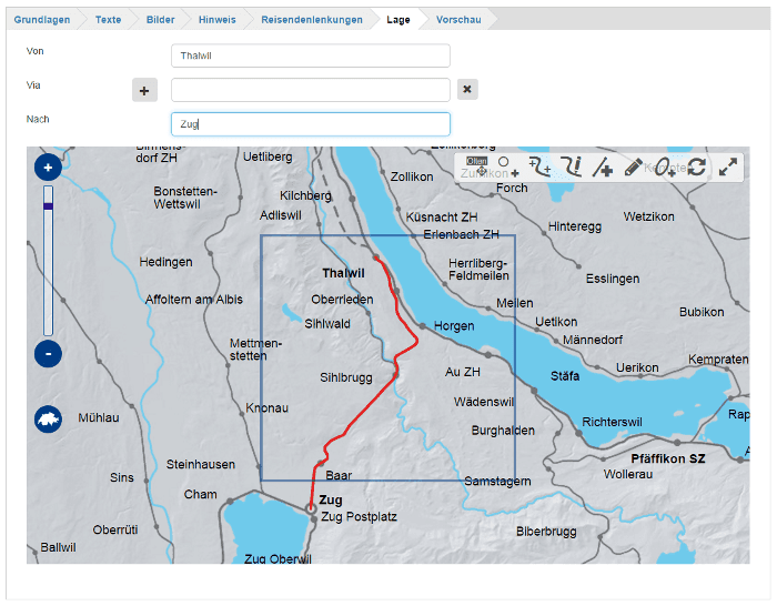 Die Basis des Störungsanzeigesystems ist das GeoCMS Cartaro. Cartaro bietet viele Funktionen, die für den Aufbau von Webanwendung direkt übernommen werden können. Dazu gehören die kombinierte Erfassung von Texten und Geodaten in einer Datenbank, die granulare Benutzerverwaltung oder auch die Option für eine genaue Revisionsverfolgung aller Einträge. Ein grosser Vorteil von Cartaro ist zudem die modulare Ausbaufähigkeit des Systems. So wurde für den Störungsmonitor der gesamte Karteneditor von Grund auf neu entwickelt und integriert. Um die Routenfindung zwischen Stationen zu integrieren wurde eine eigenständige Software von geOps über Schnittstellen angebunden, die bereits in vielen anderen Projekten Anwendung gefunden hat.